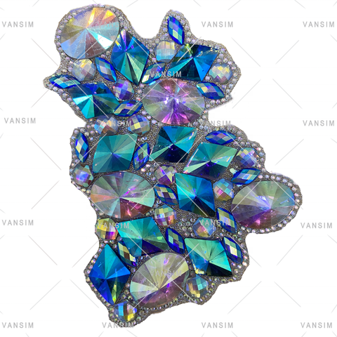 カーニバルコスチュームアクセサリーグリーンABアクアAB虹色の樹脂ラインストーンアップリケダイヤモンド